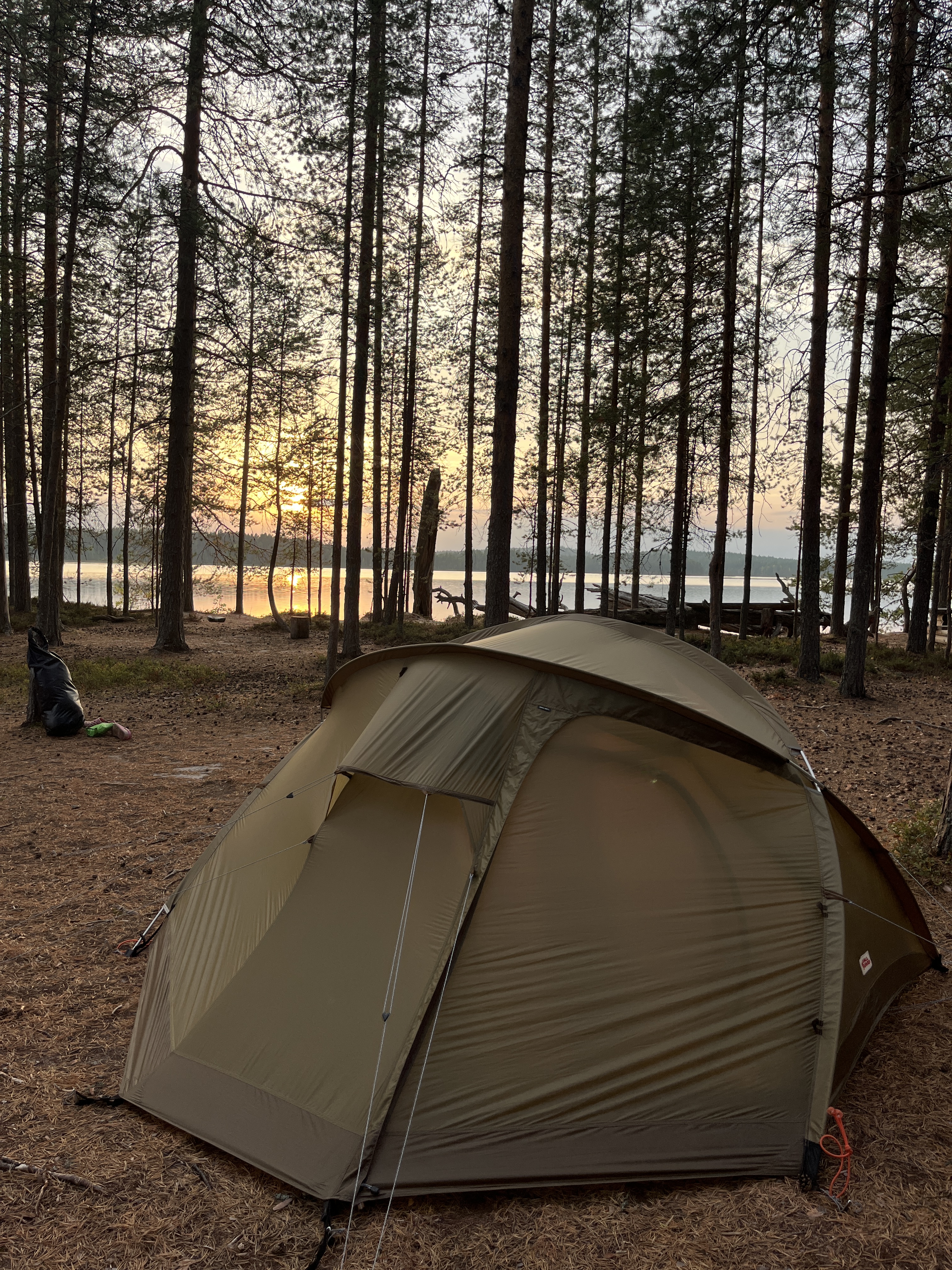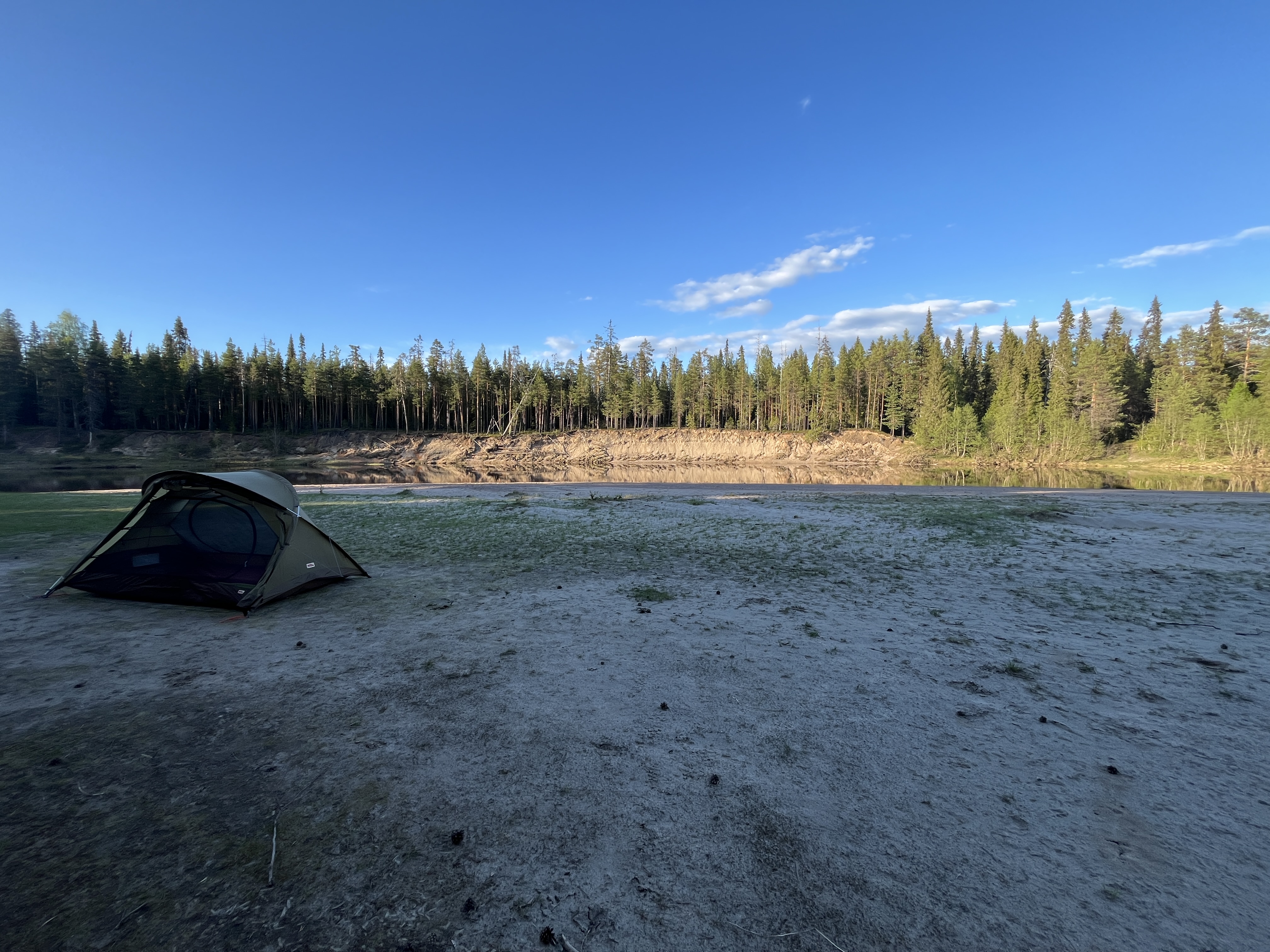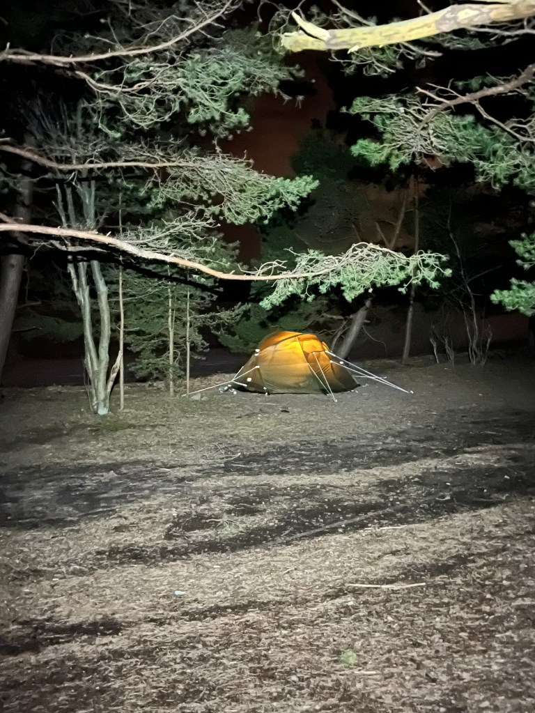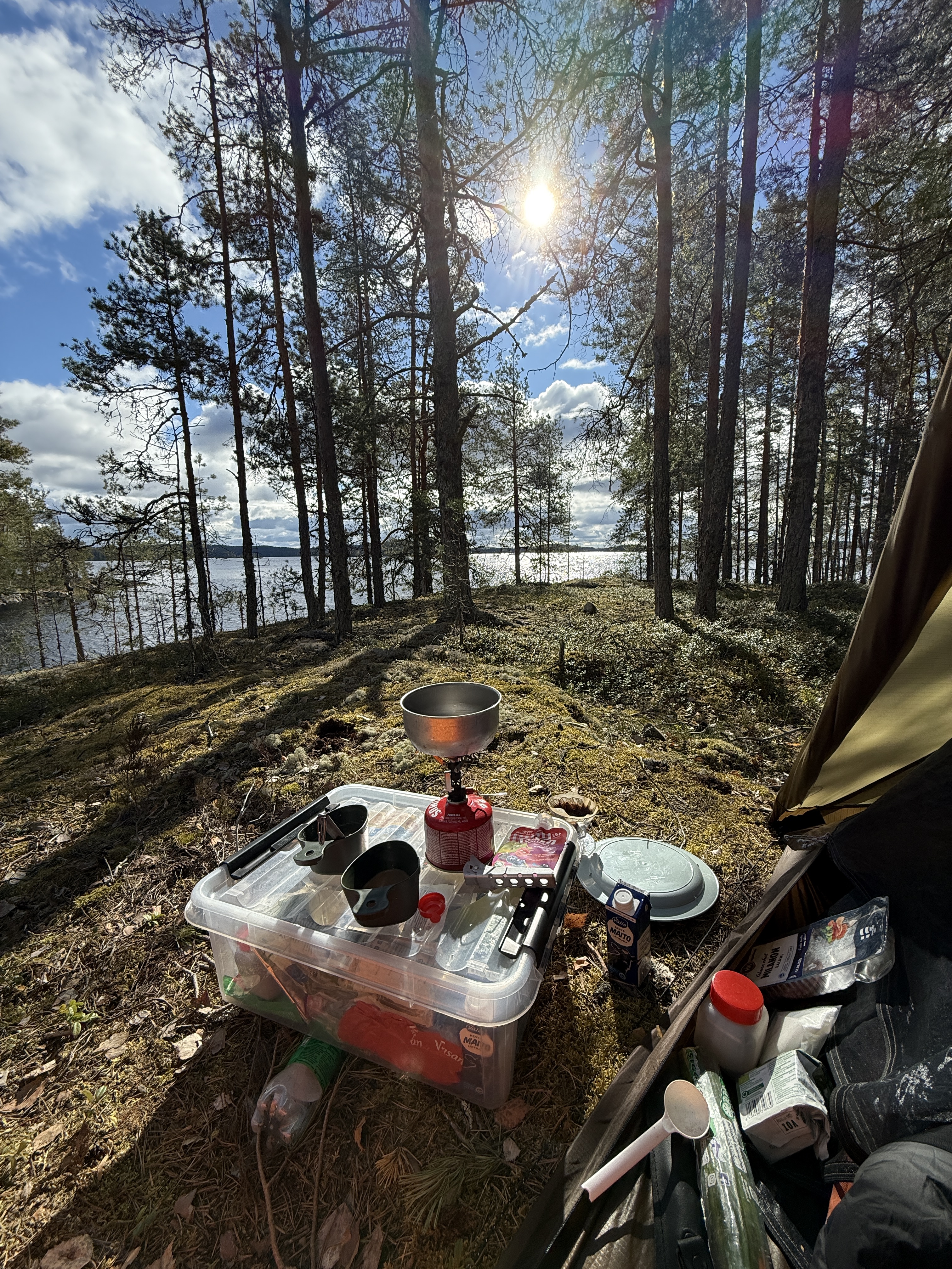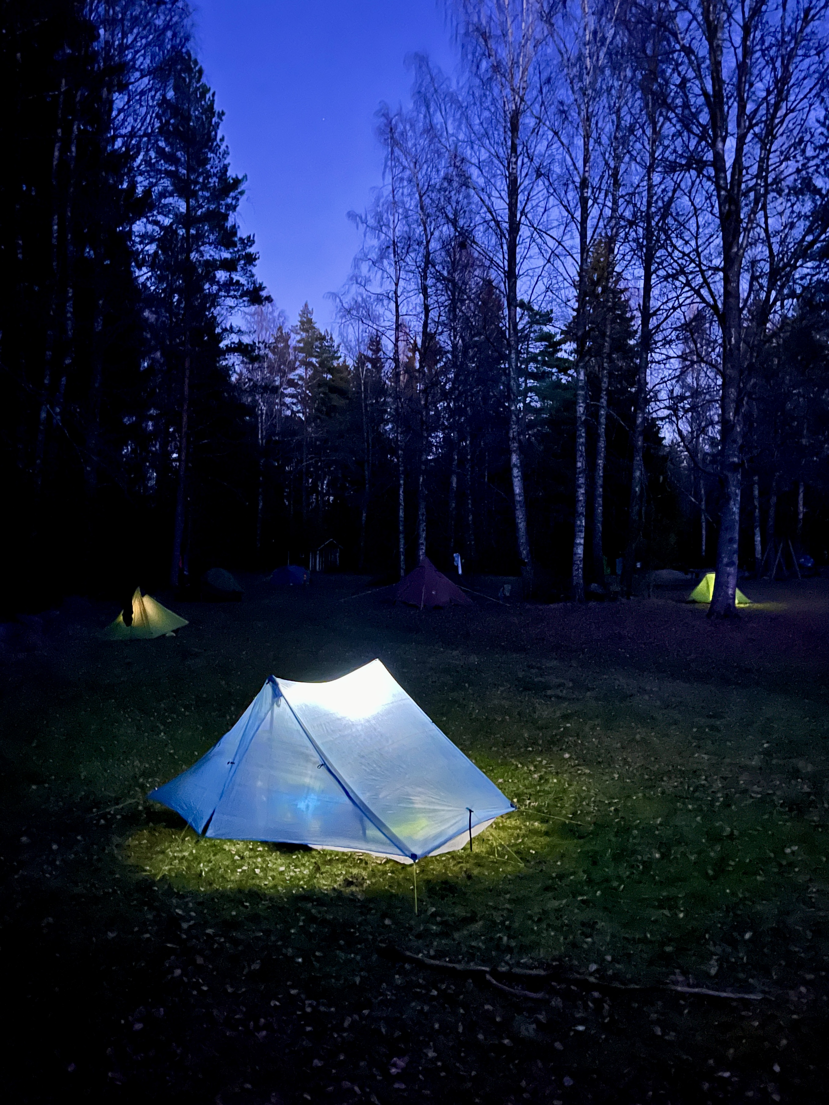 Keli oli hyvä ja lämmin. Lämmitin illalla kaminaa ihan pikkaisen. Mutta laitoin sen yhden klapin liikaa, vähän aikaa oli turhan lämmintä kämpässä. Ötököitä ilmaantui pikkasen kämpän ulkopuolelle iltasella, mutta ei paljon. Ja joo, nukuin kämpässä. Katselin telttapaikkoja kämpän ulkopuolelta mutta omaan makuuni sellaisia hyviä ei oikein löytynyt.