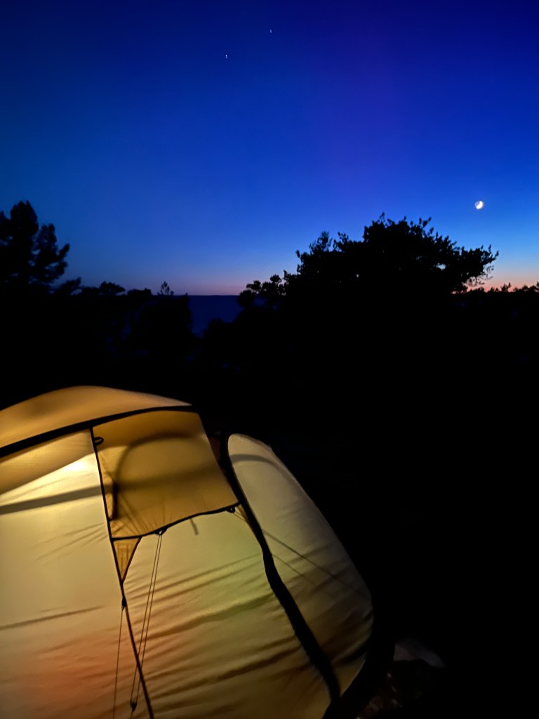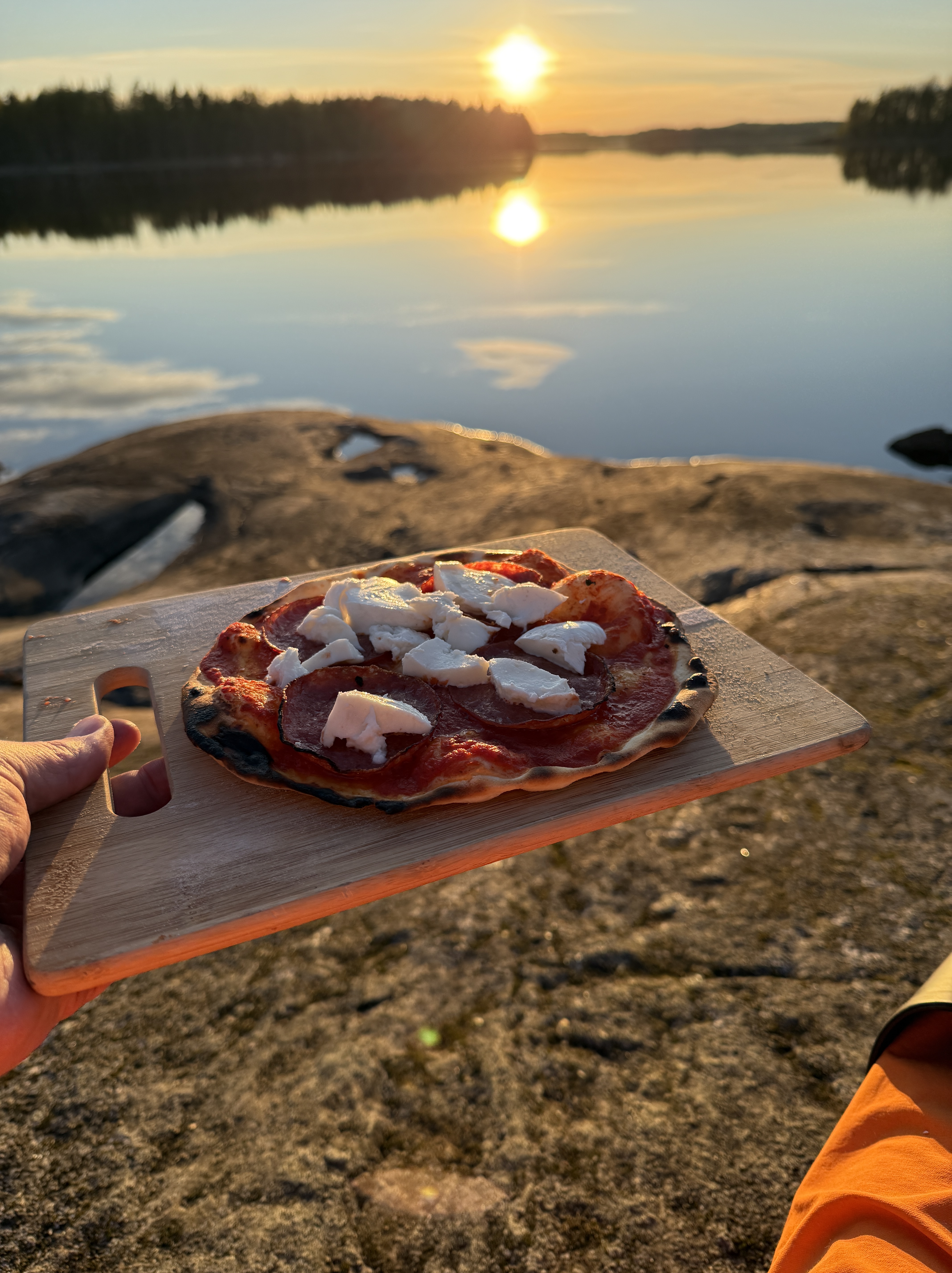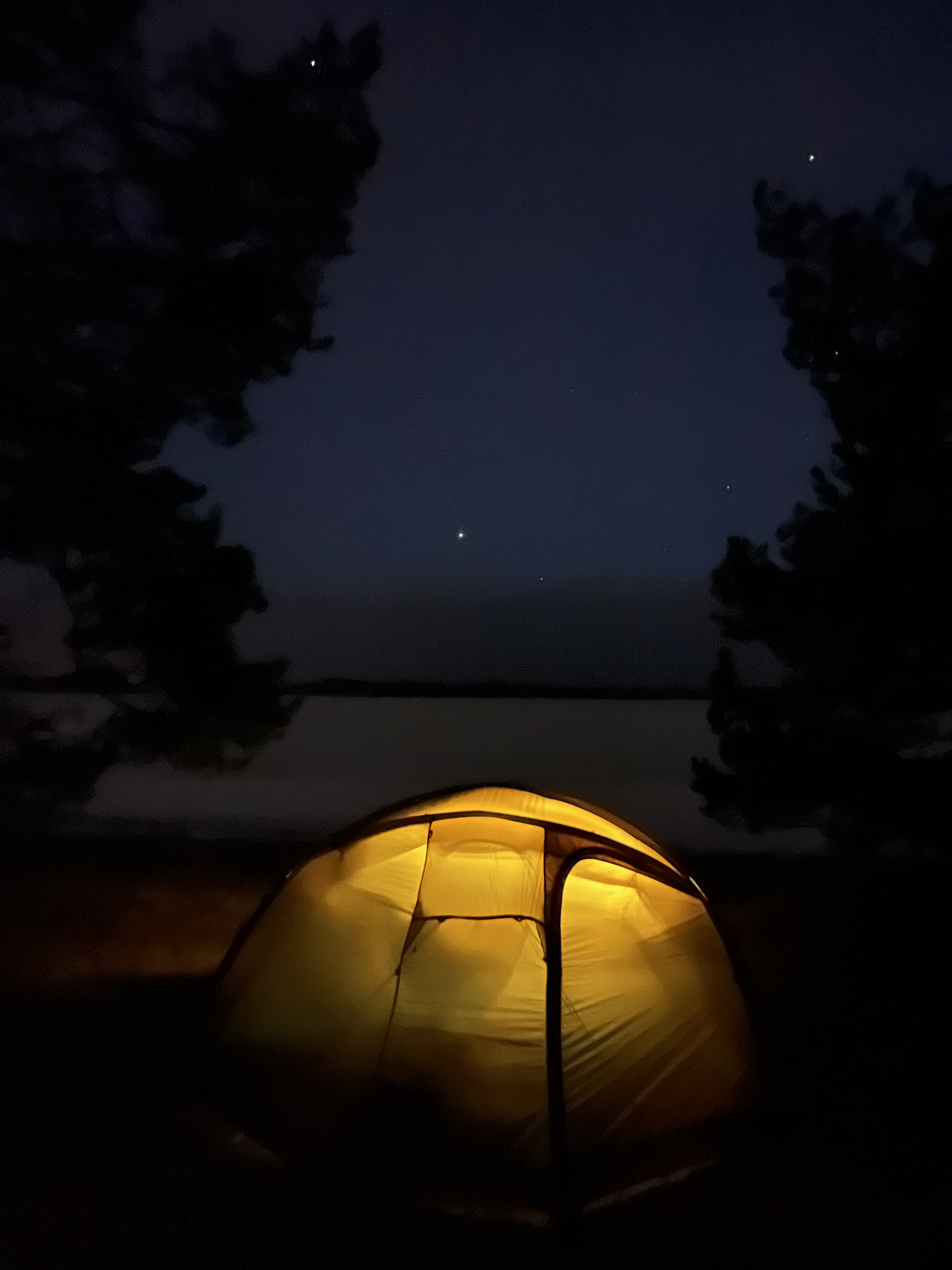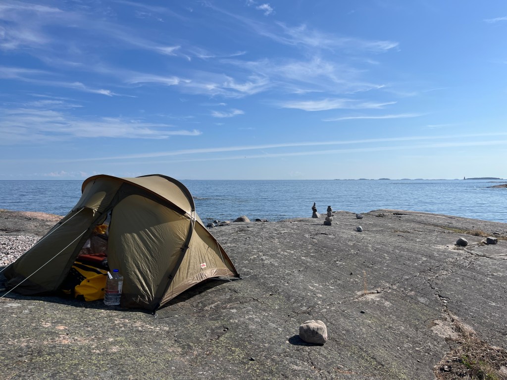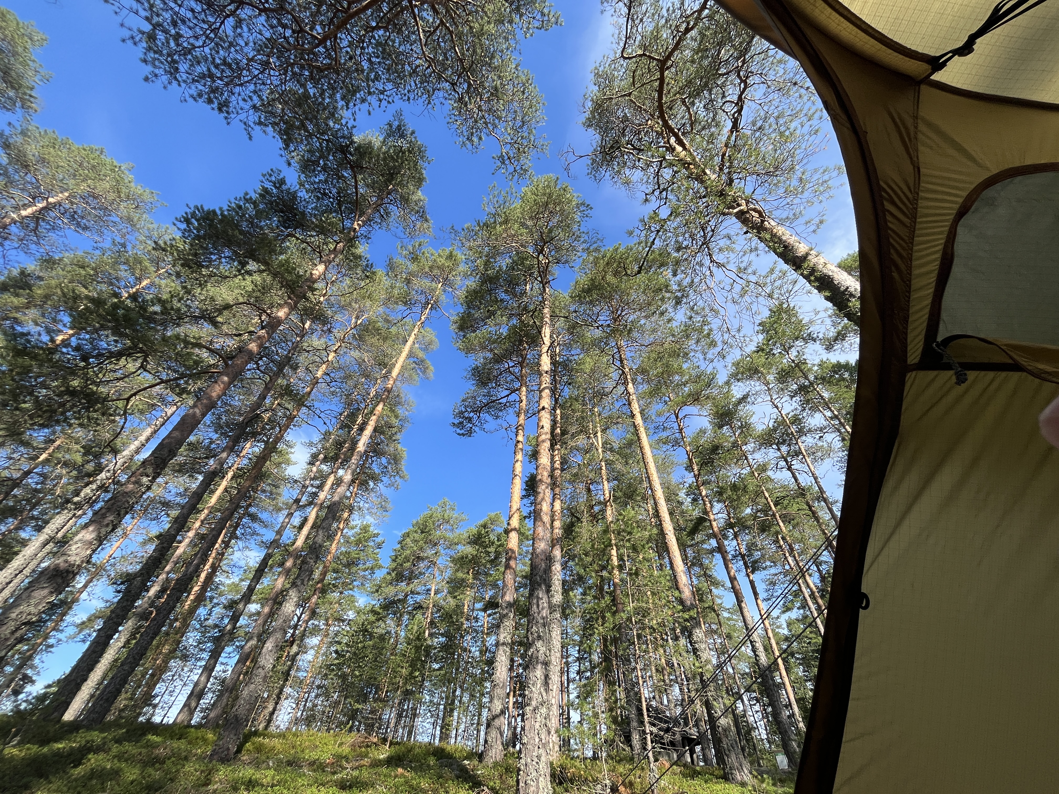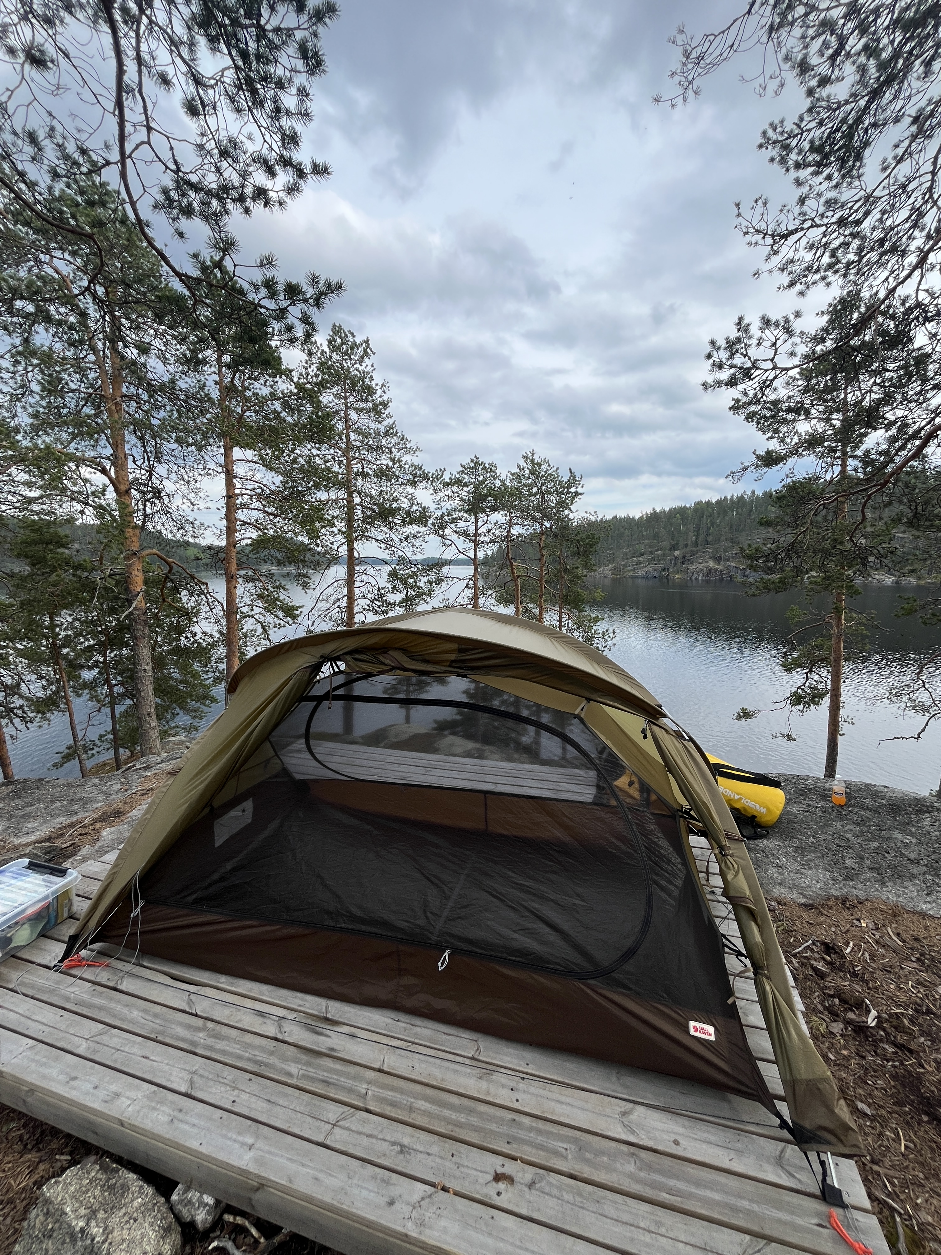 Keli oli hyvä ja lämmin. Lämmitin illalla kaminaa ihan pikkaisen. Mutta laitoin sen yhden klapin liikaa, vähän aikaa oli turhan lämmintä kämpässä. Ötököitä ilmaantui pikkasen kämpän ulkopuolelle iltasella, mutta ei paljon. Ja joo, nukuin kämpässä. Katselin telttapaikkoja kämpän ulkopuolelta mutta omaan makuuni sellaisia hyviä ei oikein löytynyt.