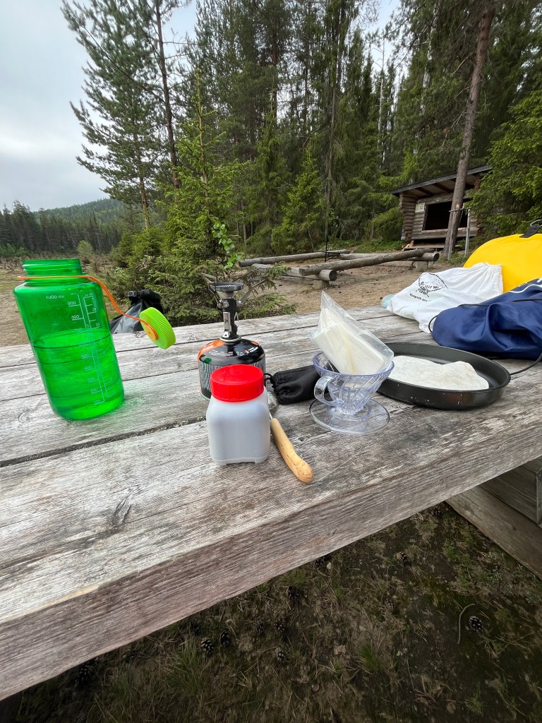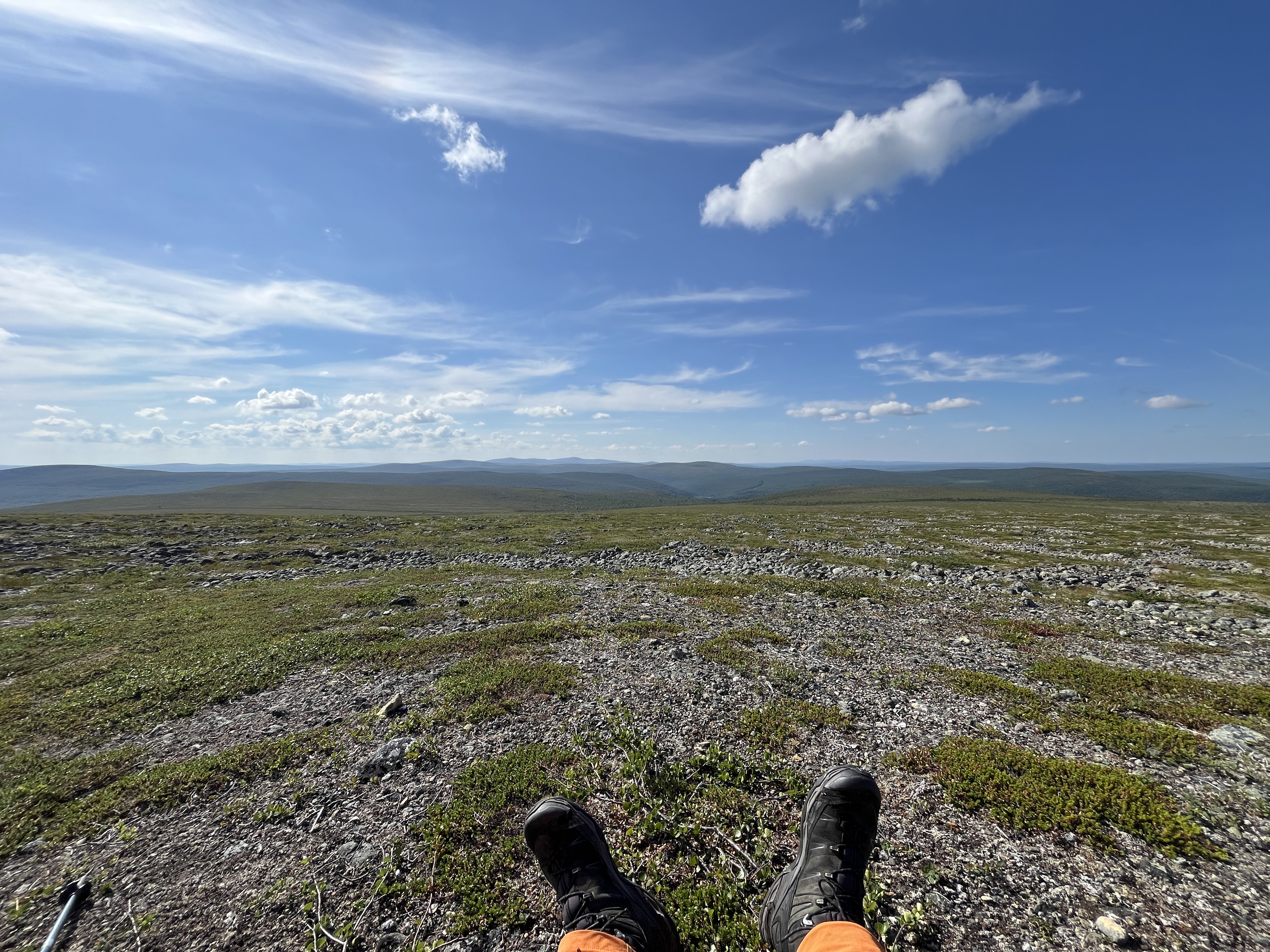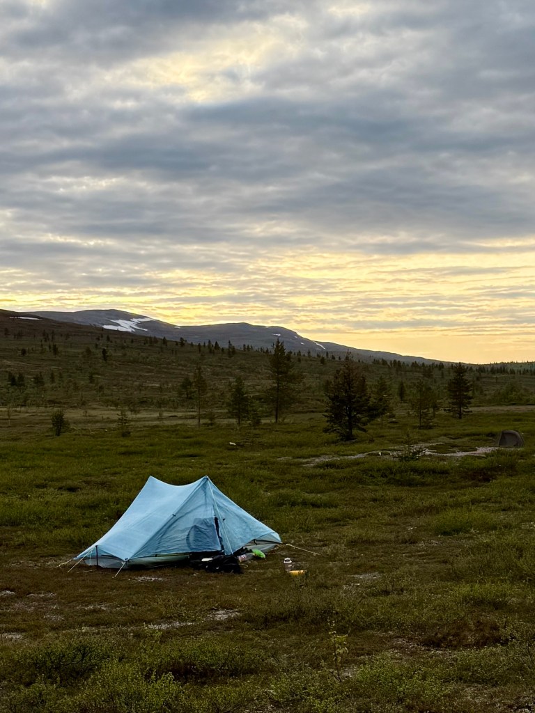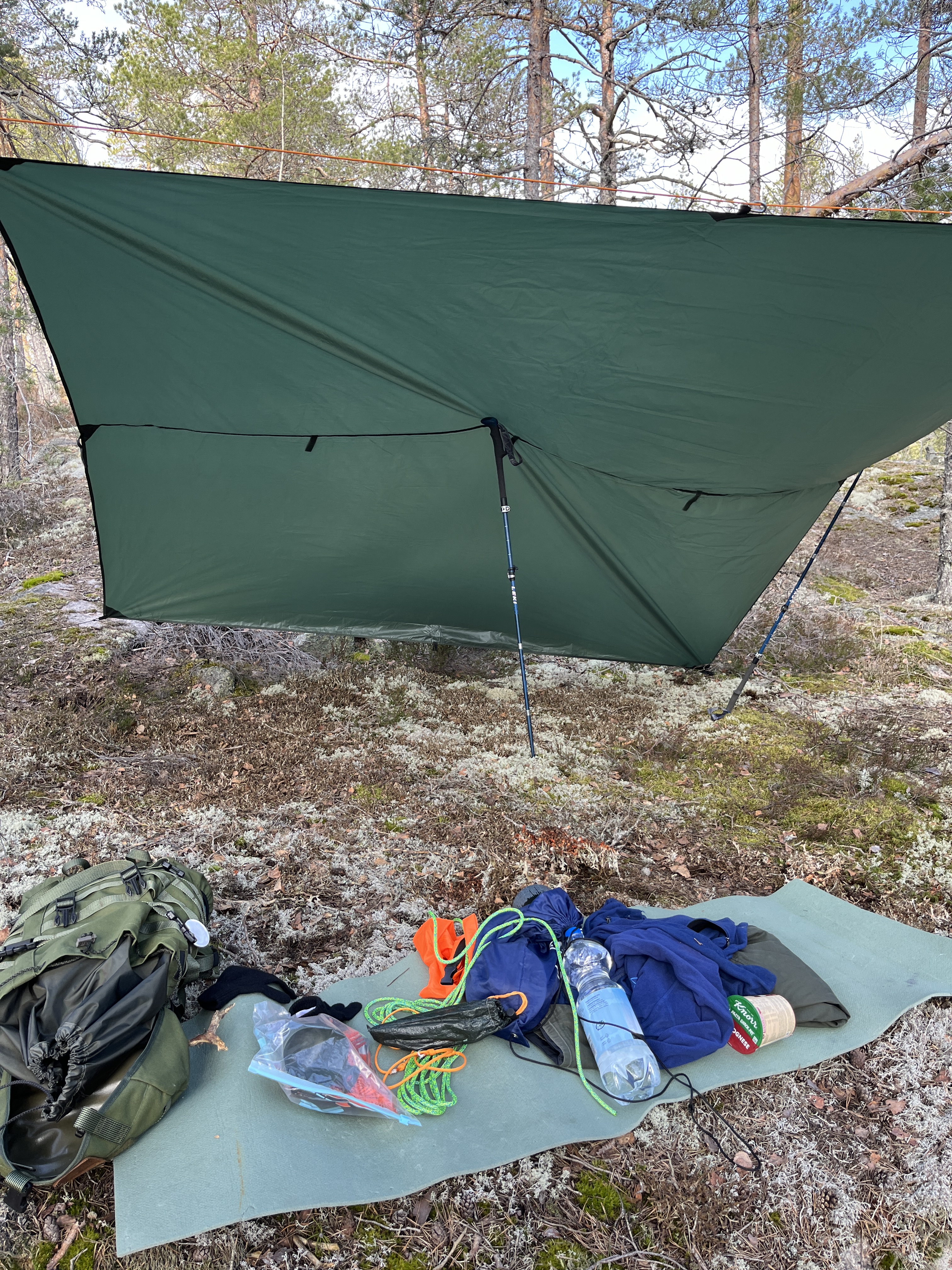 No teoriassa se olis ollut sellainen seitsemän päivän reissu +-1 päivää riippuen reitistä. Ruokaa oli kyllä seitsemälle päivälle (plus varapäivä). Mitä muuta erikoista? Kenkinä oli ei niin vettä pitävät vaelluskengät jotka kyllä mukavat kävellä. Sadehousuja en ottanut lainkaan mukaan! Miksei, no en vaan ottanut! Makuupussina oli kesämaakupussi, no kun vielä elokuu.