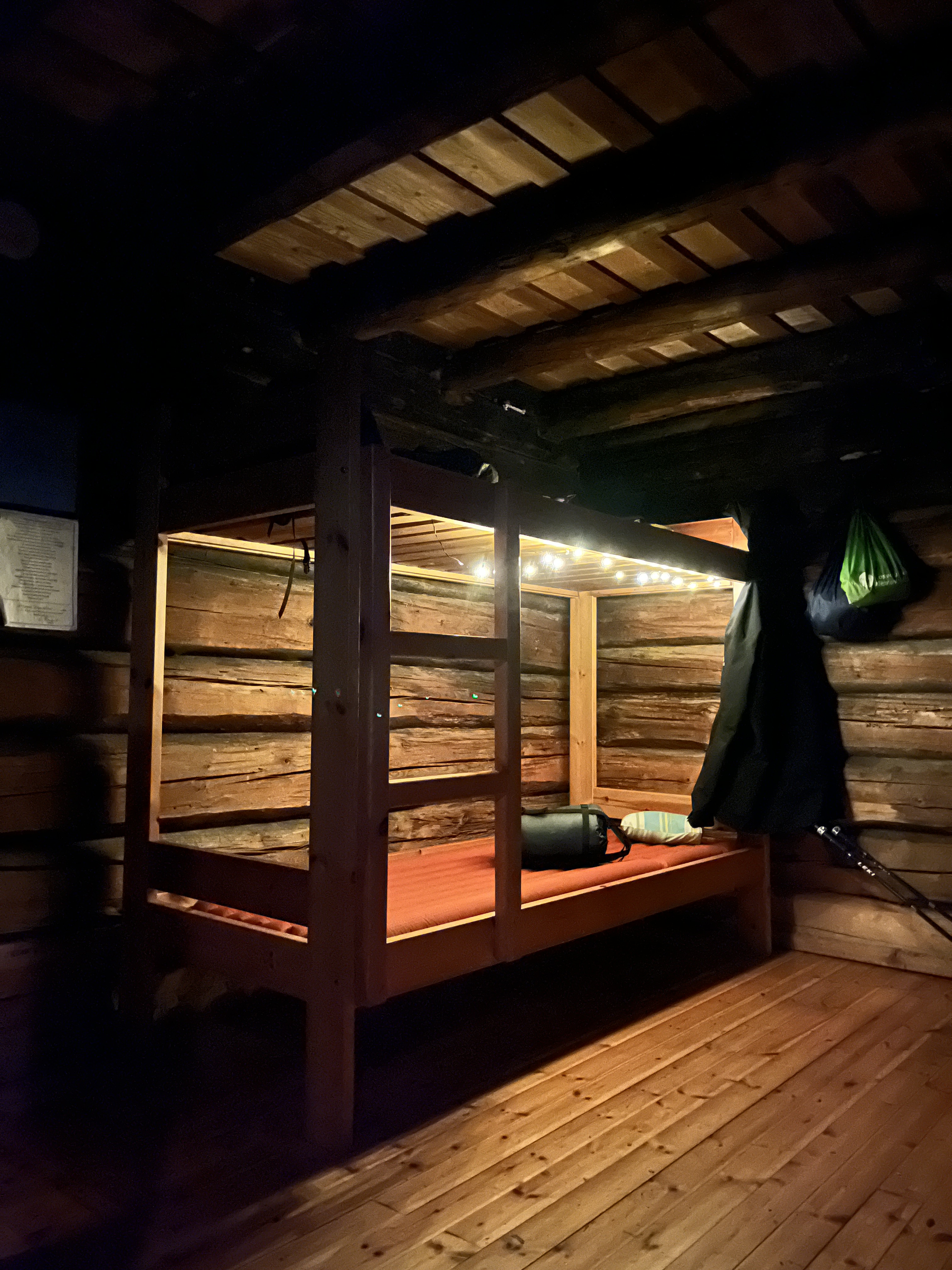 Ja joo, nukuin viimeisen yönkin kämpässä. Peskihaarassa olisi kyllä ollut useita hyviä telttapaikkoja pihalla.