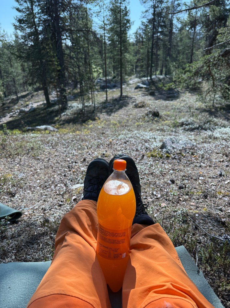 Ja kyllä Härkävaaran sauna toimi hyvin vaelluksen jälkeen. Ja sitten vielä seuraavana päivän kun tuli saunottua uudelleen ennen paluuta Peskihaaraan. Ojassa/purossa oleva vesi oli kylmää! Lonkeroa ei ollut tällä kertaa mukana. Poromiehet kyllä tarjosivat olutta, mutta ei, vieläkään en osaa juoda olutta!