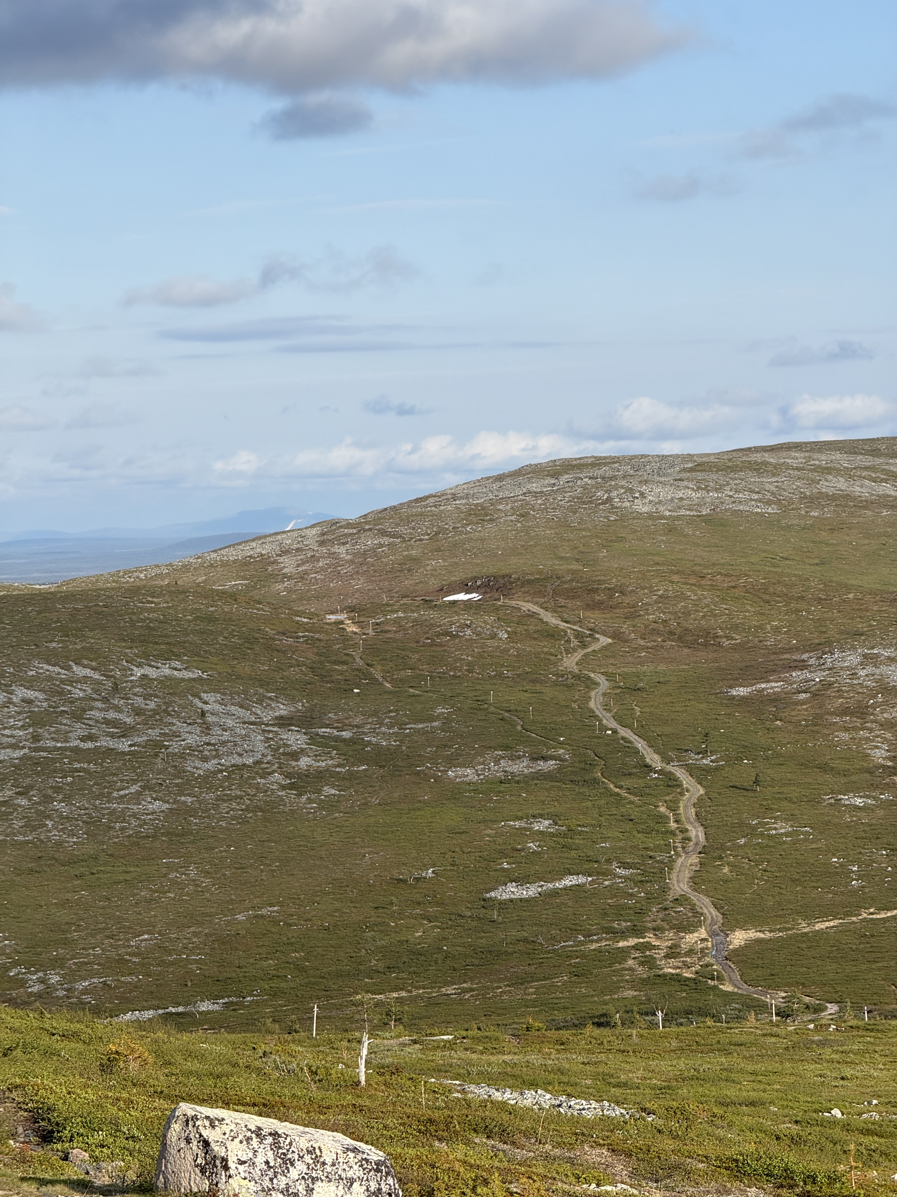 Ja olihan tuo hyvä käydä kokeilee tuollaista polutonta taipaletta. Olihan se raskaampaa mutta kun ajan kanssa menee! Poluttomia paikkoja on erilaisia, Paistunturi ja Muotkatunturi ovat paljon mukavempia mennä poluttomassa. Moni olisi saattanut tuolta Härkävaarasta oikaista Kemihaaran erämaan kautta suoraan parkkikselle mutta minä en (eivätkä poromiehetkään olisi moista tehnyt), siihen väliin nimittäin jää aikas monta kilometriä suota.