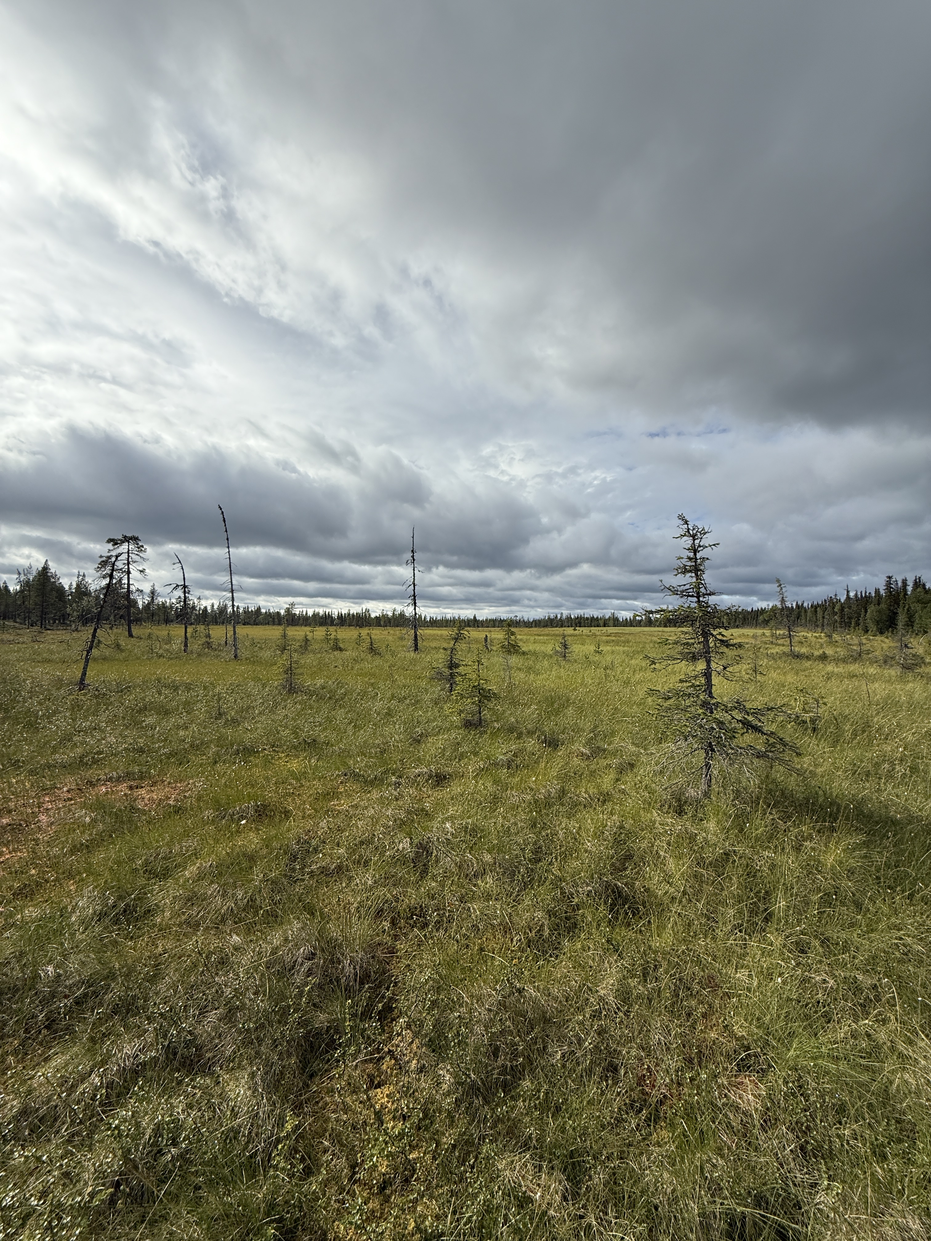 No tämä. Keli vaikutti olevan ihan ok. Pientä sateen uhkaa luvattu melkein koko päiväksi, ei mitään rankkasateita. Matkaa olisi noin 5km linnuntietä mutta mutta. Tuolla välillä ei ole polkuja, ei ainakaan karttaan merkittyjä. Ja soitakin tuohon matkalle muutama mahtuu. Tosin niitä pystyy hieman kiertämään ja valkkaamaan sillee että soiden ylitykset on ihan maltillisia. Eivätkä ne olleet mitään tosi upottavia. Jos paikoilleen jäi seisomaan niin kyllä ne sitten upotti.