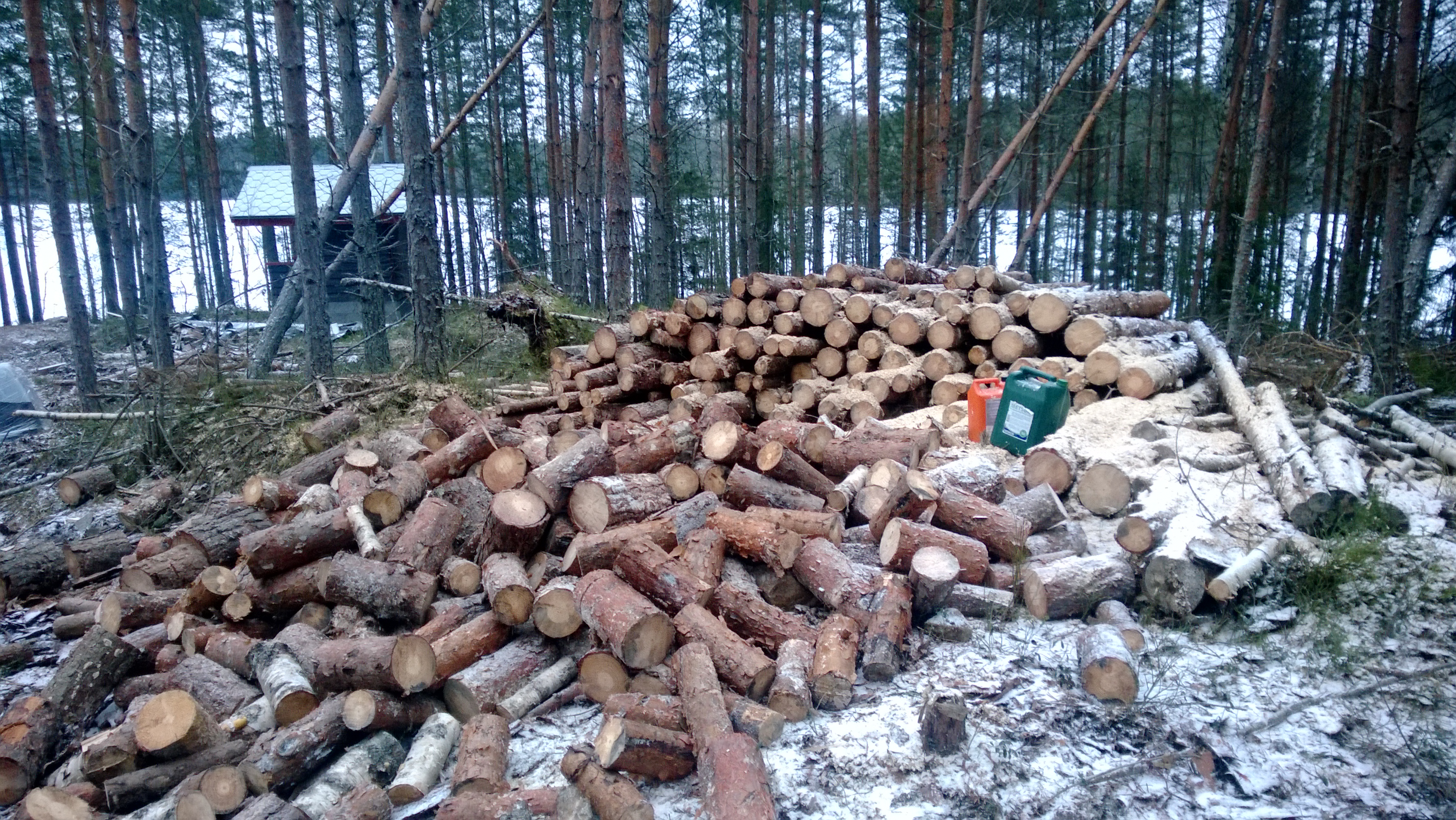 Jos nyt huomenna vielä muutaman pöllin sahaisi niin sitten keväämmällä jollain kuskaisi noita hieman kotiokkin.
