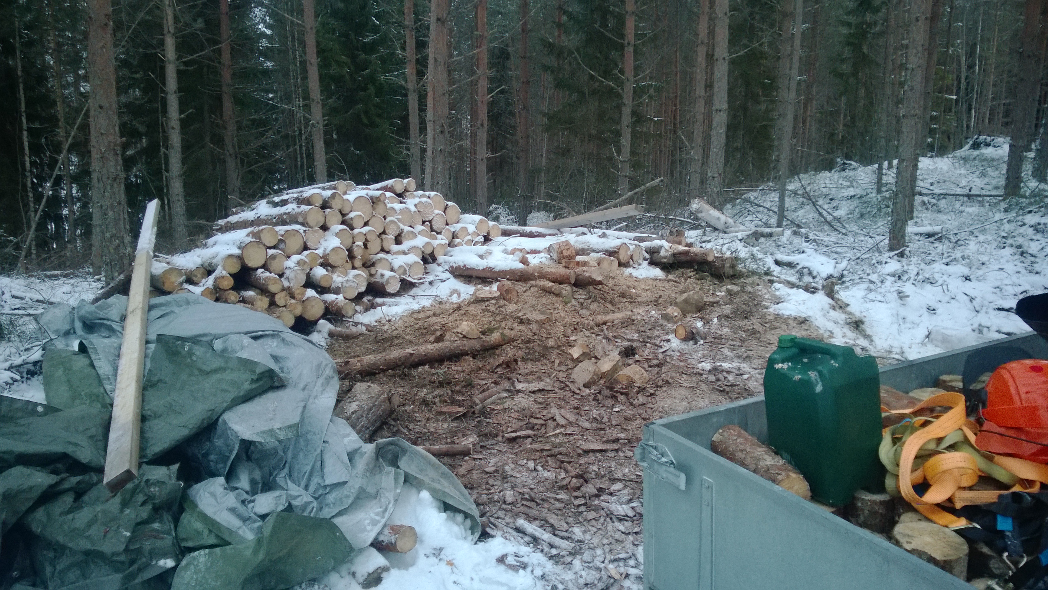 Jahas, nyt hävisi tontilta yksi kasa pöllejä. Saapas nähdä kuka noi kotona viittii halkoa.