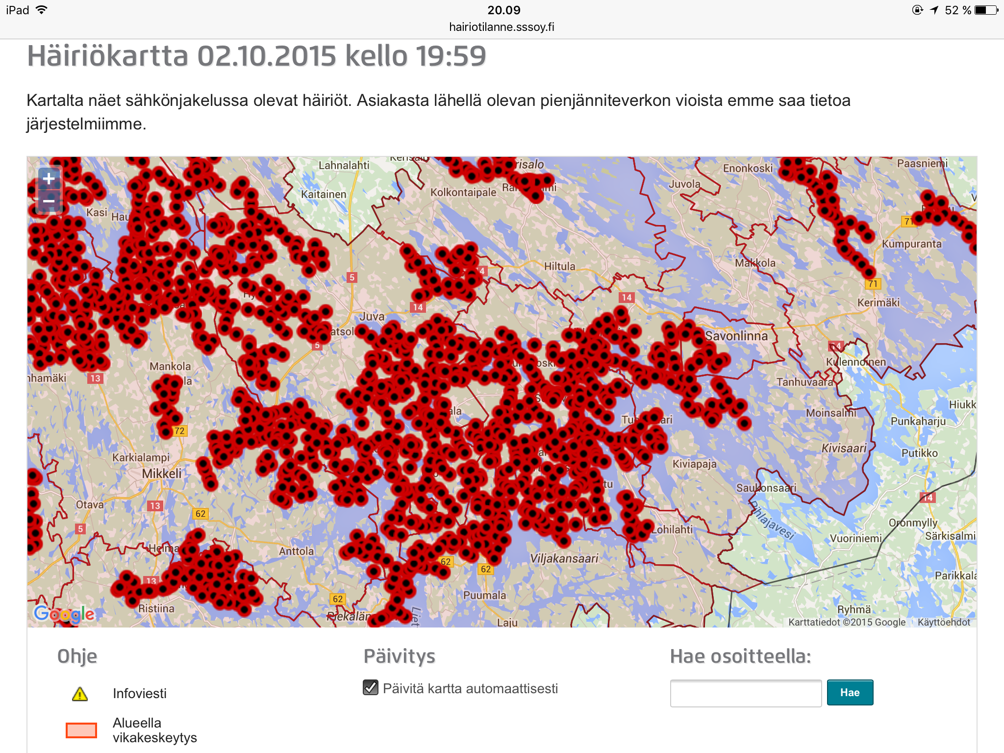 Alla olevassa kuvassa ei myrsky ollut vielä ihan kulmilla. Ja myöhempää kuvaa ei saanut kun sähköyhtiön sivut olivat jumissa.