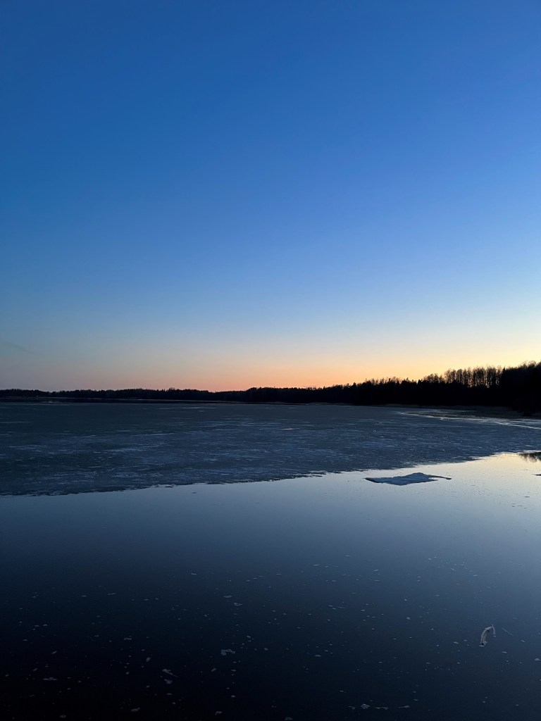 paikalle saapuessa oli meressä vielä jonkin verran jäätä, rannat olivat sulat. Mutta Lauantaina aamukahvin aikaan jää KATOSI ihan yhtäkkiä noin vaan?!?!?
