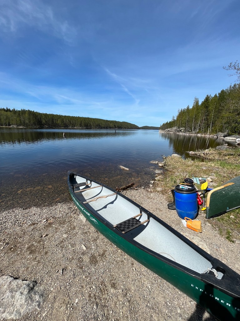 Klo 12.00 sain kanootin käyttööni Kirkkorannasta. Kanootti oli Vihreä ja kanootin lisäksi vuokraan kuului Melat, tynnyri, kartta, koussikka ja sieni (pelastusliivikin olisi kuulunut).