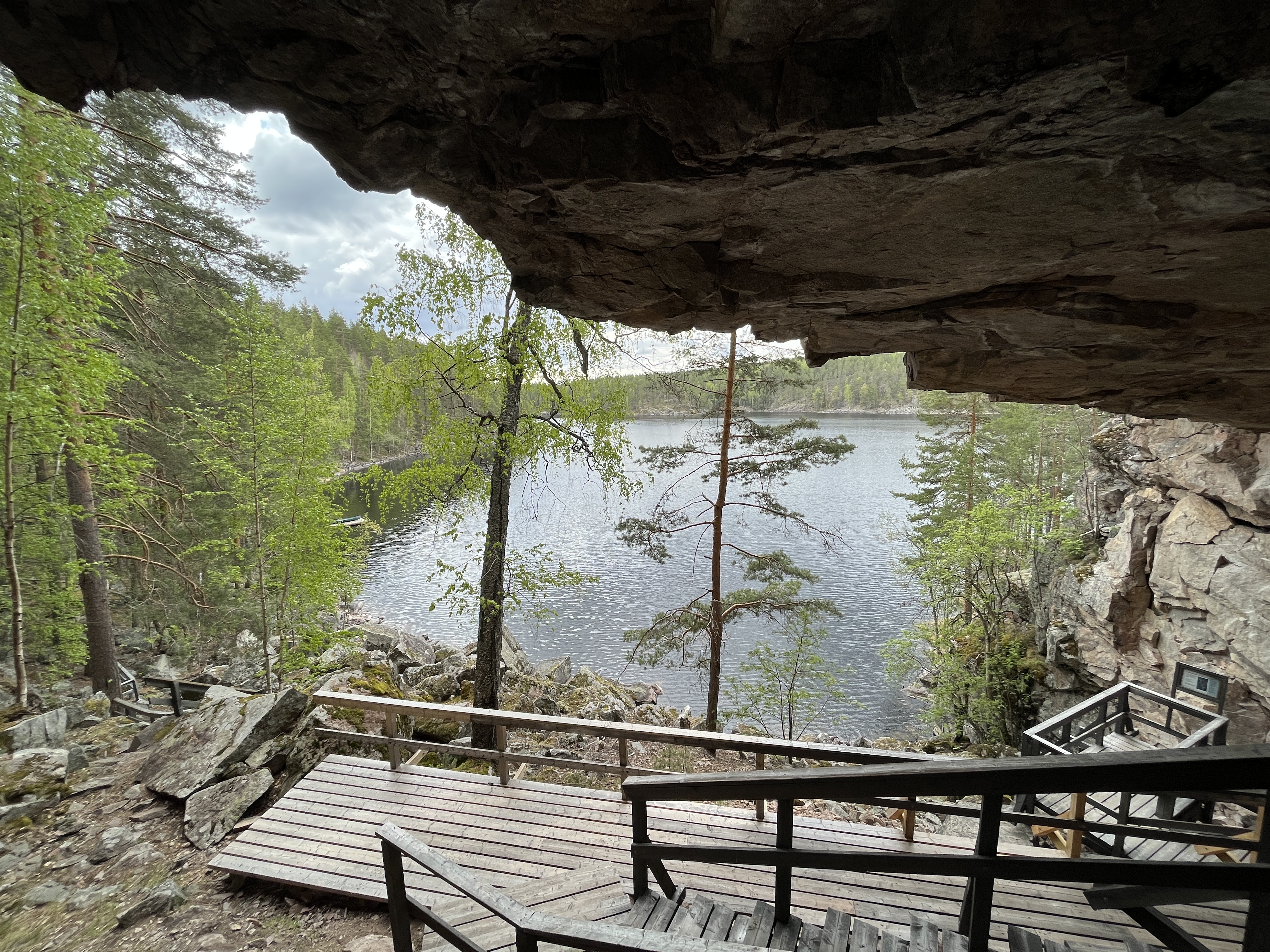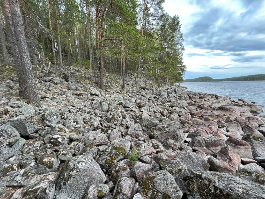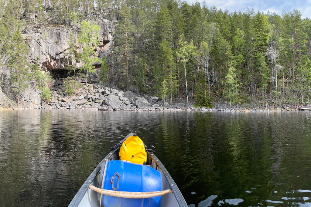 Toisen päivän maisemat oli kyllä hienoja. Ja yhtenä tutustumis kohteena oli Ukonkivi jota pääsi katsomaan Ukonkannan kautta. Vettä oli juuri ja juuri sen verran että Ukonkannasta pääsi melomalla. No otti siinä pohja jonkin verran kiinni.