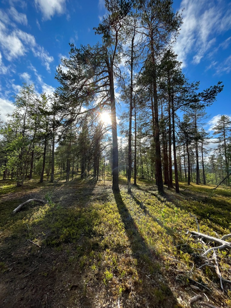 Lähtö Kemihaaran parkkipaikalta oli vasta puolen päivän jälkeen. Parkkipaikalla oli kourallinen autoja ja yksi matkailuauto josta lähti pari pyöräilijää päiväpolkasulle (ehhehee). Ekan päivän pätkä meni ihan heittämällä valosan aikana (toinen ehhehehe), kun ei aurinko laske lainkaan.