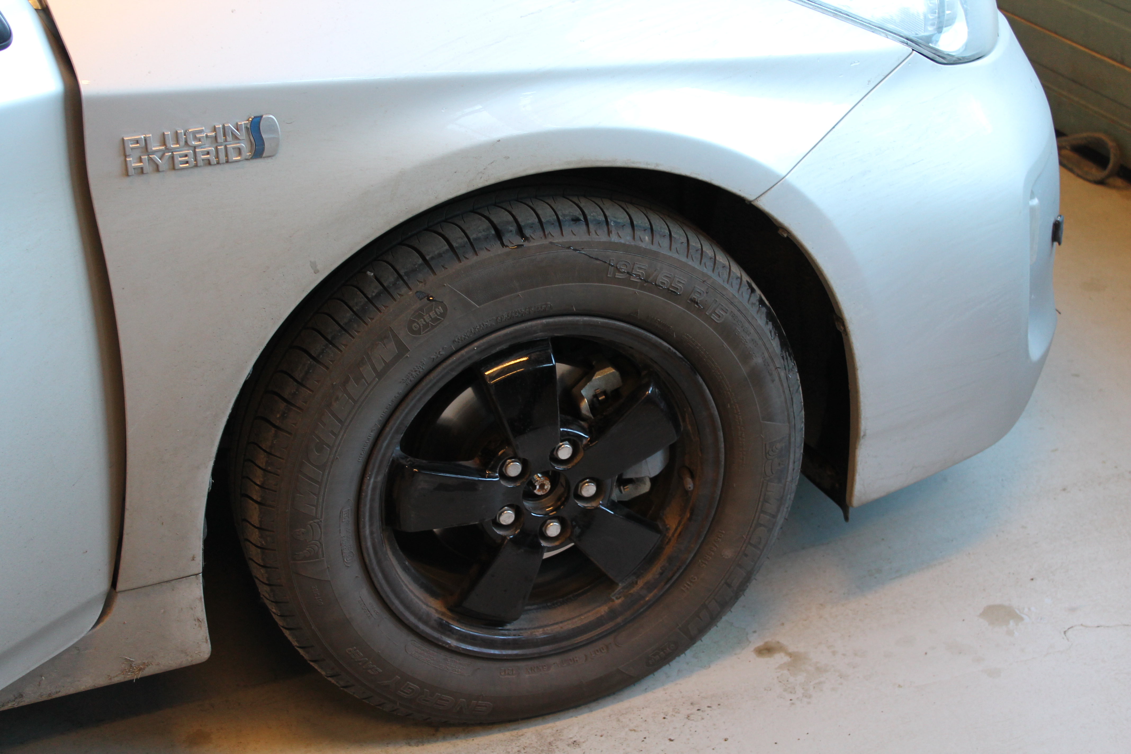 Ja kesä tulee kovaa vauhtia ja Prius on ottanut alleen uudet kesägummit. Ja tältä se näyttää pienen hifistelyn jälkeen (on otettu maalipurkki tosi käuniiseen käteen ja maalattu oikein urakalla!!!!).