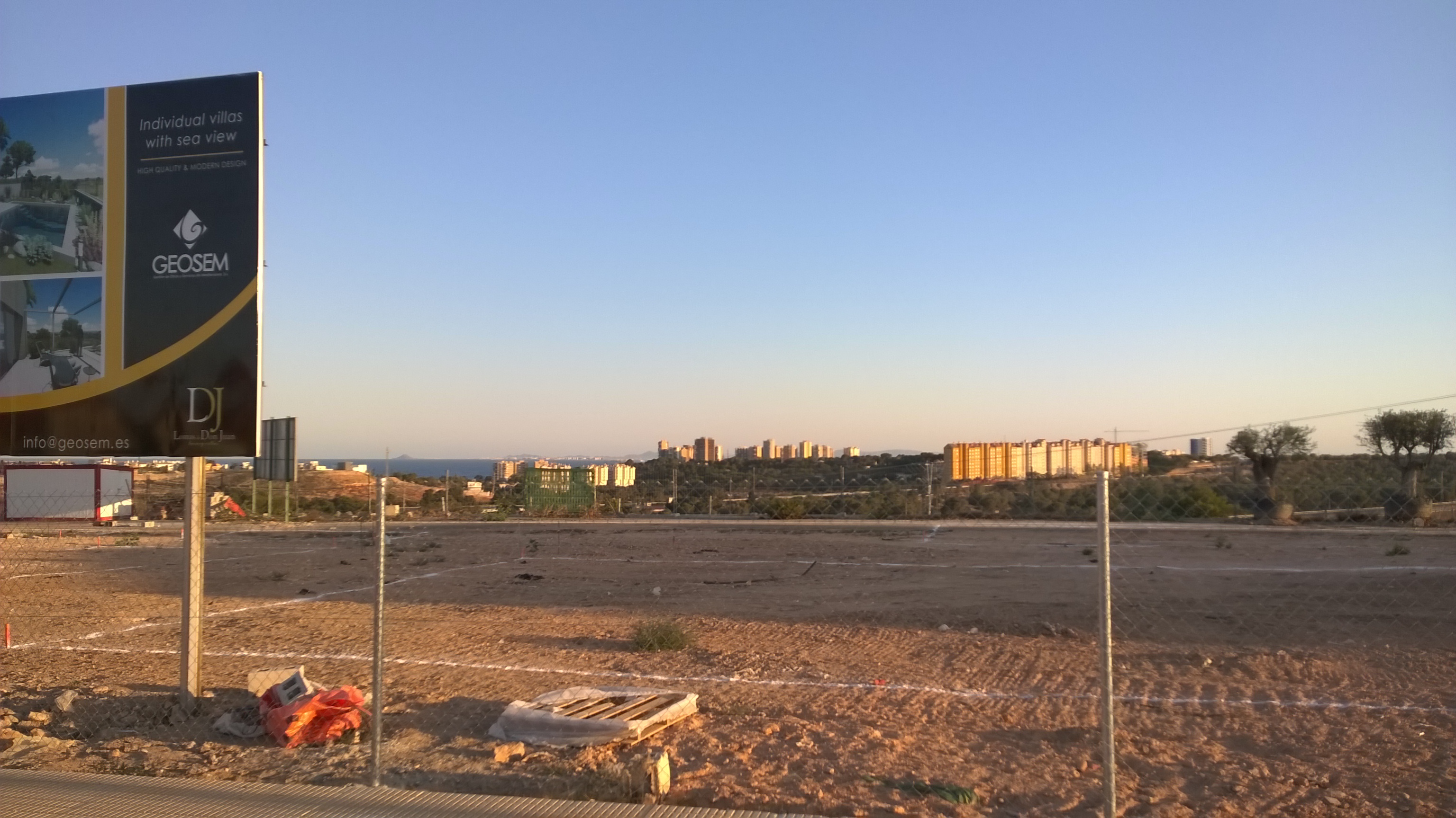 Tämäkin paikka (tyhjä tontti) oli ”väärällä” puolella autopistaa, mutta rantaan on matkaa vain se pari kilometriä. Tuo on se matka jonka eläkkeellä oleva englantilainen jaksaa aamulla kulkea kärryineen välimeren rannalle. Jos ranta on kauempana jää matka kesken johonkin pubiin kovin herkästi.
